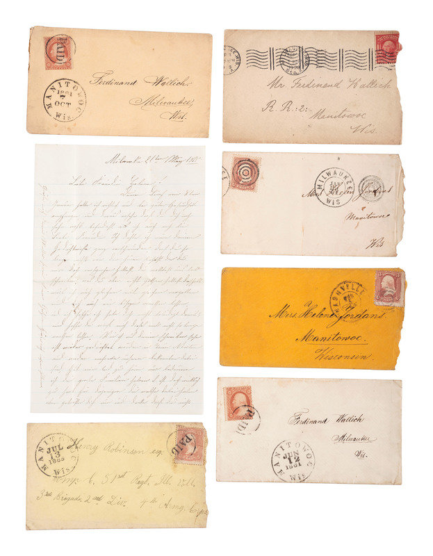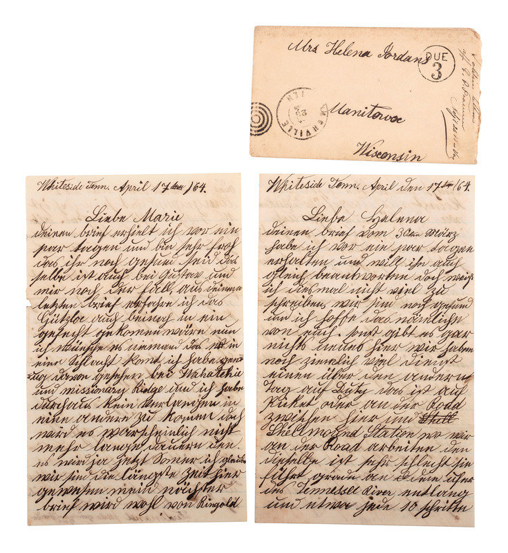 [CIVIL WAR]. A group of 27 letters addressed to Helene Wallich Jordans from husband and brothers serving with the 82nd Illinois and the 26th Wisconsin Infantries. January 1863-June 1865.