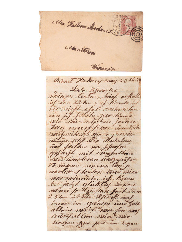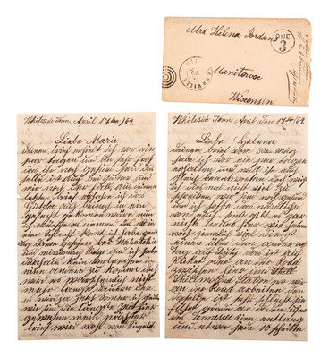 The unit was mustered out 9 June 1865 in Washington, DC. This group of 27 plus letters were addressed to Helene between Jan. 1863 and June 1865 from her brothers, mother and husband. All are in German and have been transcribed by a previous owner except for the one post-war letter (#28).
