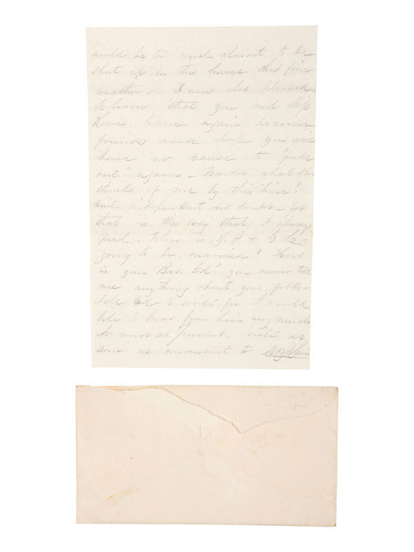 As graduation nears, Martin requests a picture of Mary. [Military Academy, West Point, NY, Dec. 22, 1859.] “Your description of yourself is amusing, but never mind your looks, I will think just as much of the picture as if you were perfect as a model of beauty. I am afraid you would not have a very good opinion of me if you thought I liked my friends for their good looks. I shall wait patiently for those ‘black ringlets’ of yours to attain the proper length.”