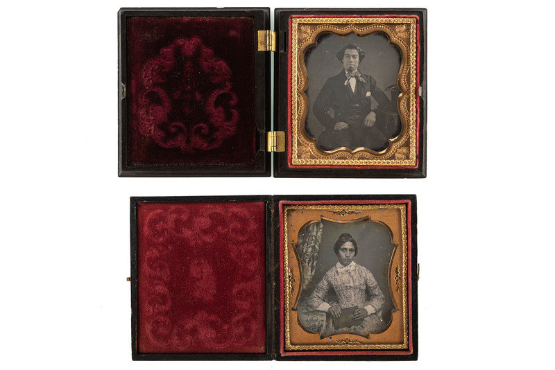 [EARLY PHOTOGRAPHY - PORTRAITURE]. A pair of daguerreotype portraits of mixed race subjects.