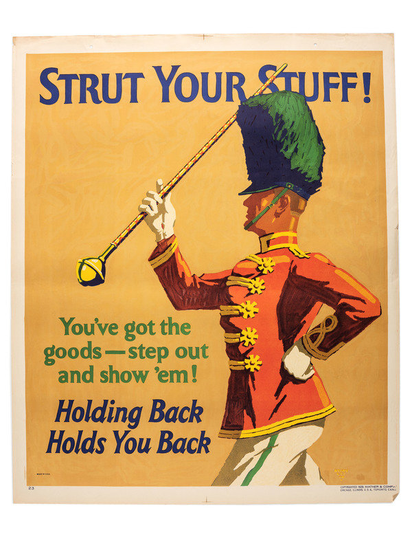 [POSTERS]. LEE, JR., Henry, artist. Strut Your Stuff! You've got the goods - step out and show 'em! Holding Back Holds You Back. Chicago: Mather & Co., 1929.