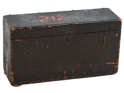 Brass surveying level and scope manufactured by Young & Sons, Philadelphia, #8079. Scope approx. 17 1/2 in. closed, 19 1/2 in. open, with overall height of piece approx. 9 in. (tarnish and light wear but generally good, optics in unknown working condition). Top portion of circular base engraved on side edge "C.M. & ST. P. 212." Housed in original wooden case with paper label affixed to interior center of lid "Young & Sons / Engineering Mining, and Surveying / Instruments / 43 North Seventh Streets / Philadelphia." Label on interior left lid for "R. Seelig & Son / Manufacturers of / Engineering & Surveying Instruments ... 221-237 North Fifth Avenue Chicago." Case lid is painted with red “212” (expected wear to wooden case, appears that side handles - now missing - were reattached numerous times as indicated by holes on either side of case).