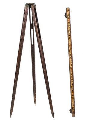 [With:] Tripod, 58 1/2 in. (closed) and with red painted number "212" on one leg. -- Measuring ruler, 54 in.