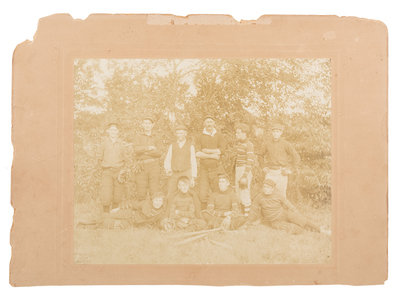 7-1/2 x 9-1/2 in. photo on larger mount (chipped along top edge). Team members wear whatever suits them - no team jersey.