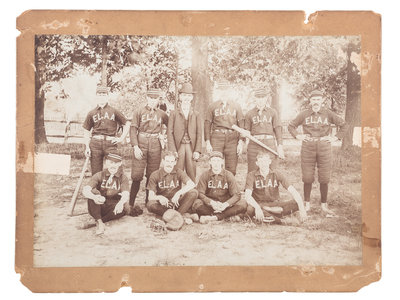 Approx. 6 x 8 in. photo on larger card mount. Team with E.L.A.A. on jerseys (East Los Angeles??).