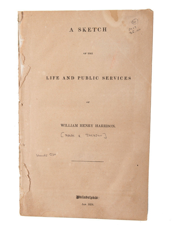 [JACKSON, Isaac R.]. A Sketch of the Life and Public Services of William Henry Harrison. Philadelphia: Jan. 1836. Campaign literature for Harrison’s first (unsuccessful) run at the Presidency.