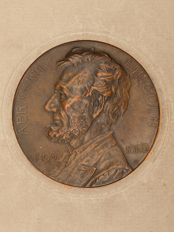 [ABRAHAM LINCOLN]. 1908 Lincoln Centennial Medal with 6 Lincoln-related works, comprising: