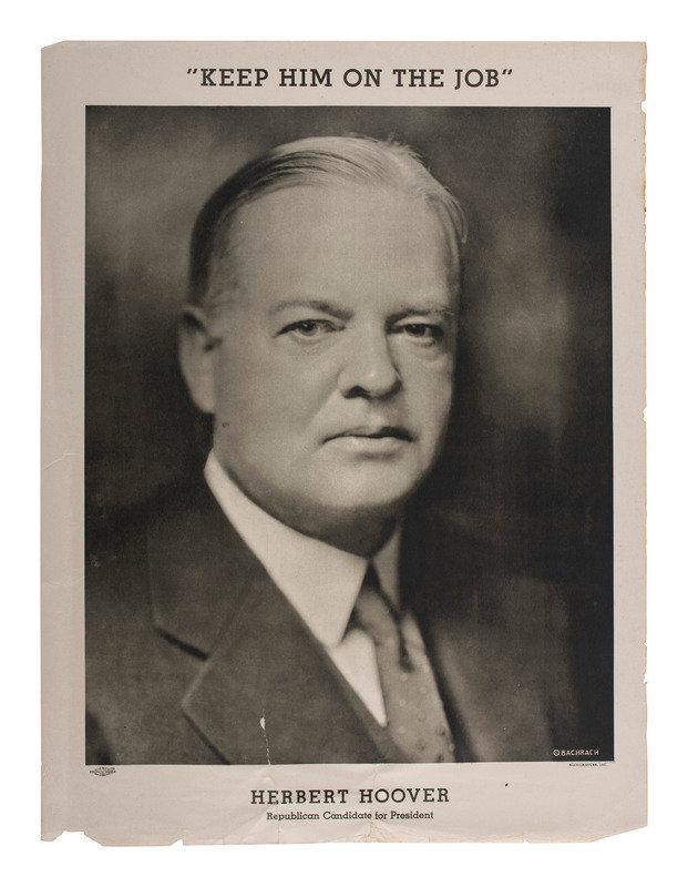 16 x 21.5 in. “Keep him on the job. / Hebert Hoover, Republican Candidate for President.” Herbert Hoover (1874-1964, President 1929-1933).