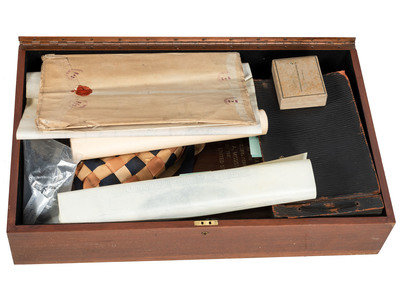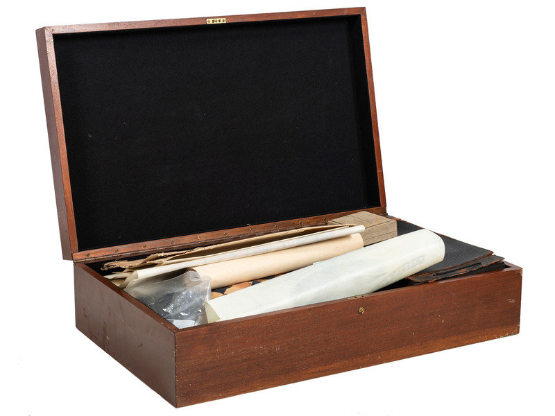 All items housed in wood travel case, 24 1/2 x 14 1/2 x 7 3/4.
