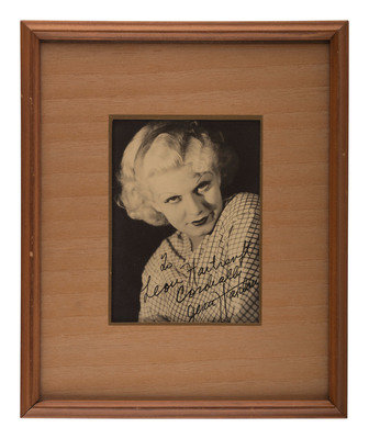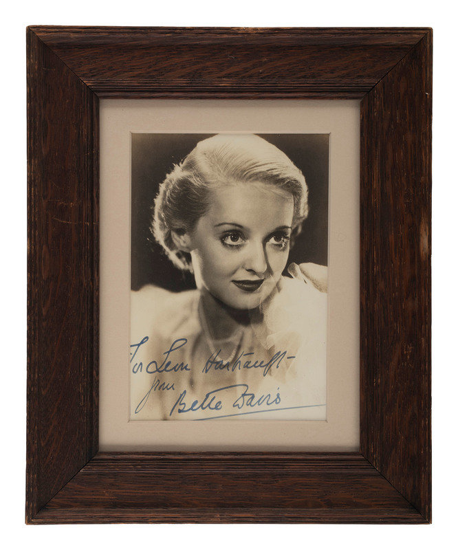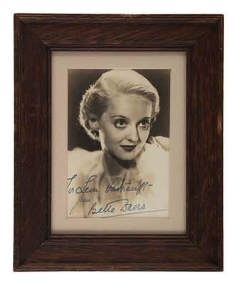 Autographed Bette Davis photo, 4-3/8 x 6-3/8 (sight). "To Leon Hartranft / from/ Bette Davis."
