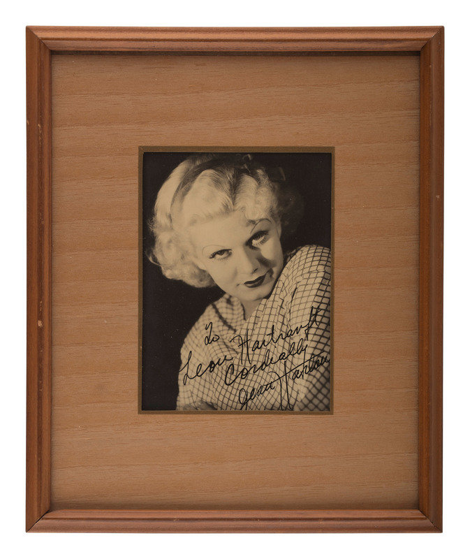 [With:] Photograph of Jean Harlow autographed by "Mama Jean." 4 x 5-1/2 in. (sight). "To Leon Hartranft / Cordially / Jean Harlow." Harlow's mother signed most of her correspondence.