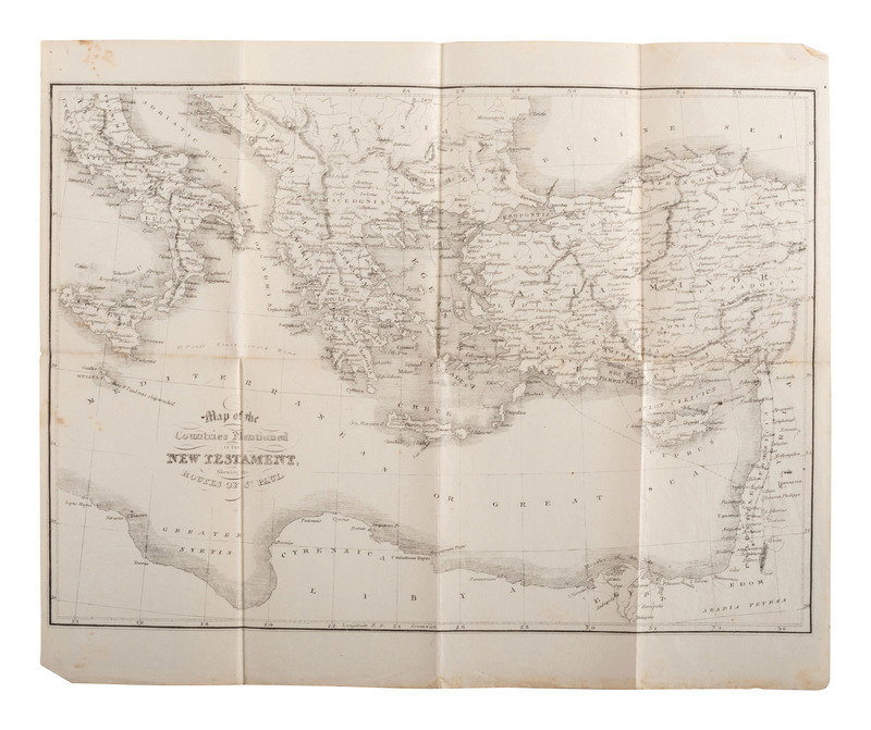[With:] Map of the Countries Mentioned in the New Testament Showing the Routes of St. Paul. N.p.: N.p., n.d. Engraved map of the Mediterranean region, 285 x 202 mm (sheet 295 x 241 mm). (Old folds, minor spotting).
