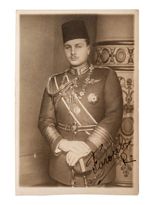 [AUTOGRAPHS]. Signed real photo postcard of King Farouk I of Egypt.