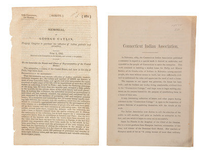 Memorial of George Catlin, Praying Congress to purchase his collection of Indian portraits and curiosities. June 5, 1846. Senate Doc. No. 374, 29th Congress, 1st Session, 2pp.