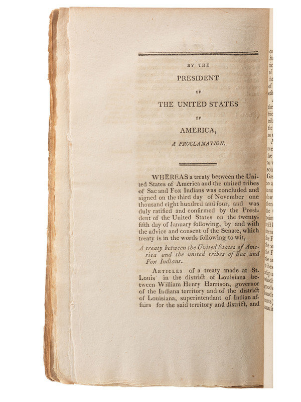 Acts Passed at the second Session of the Fifteenth Congress… 16 November 1818. Washington: [1819]. 8vo, plain wraps, 112pp. Appendix of Indian Treaties, 116pp.