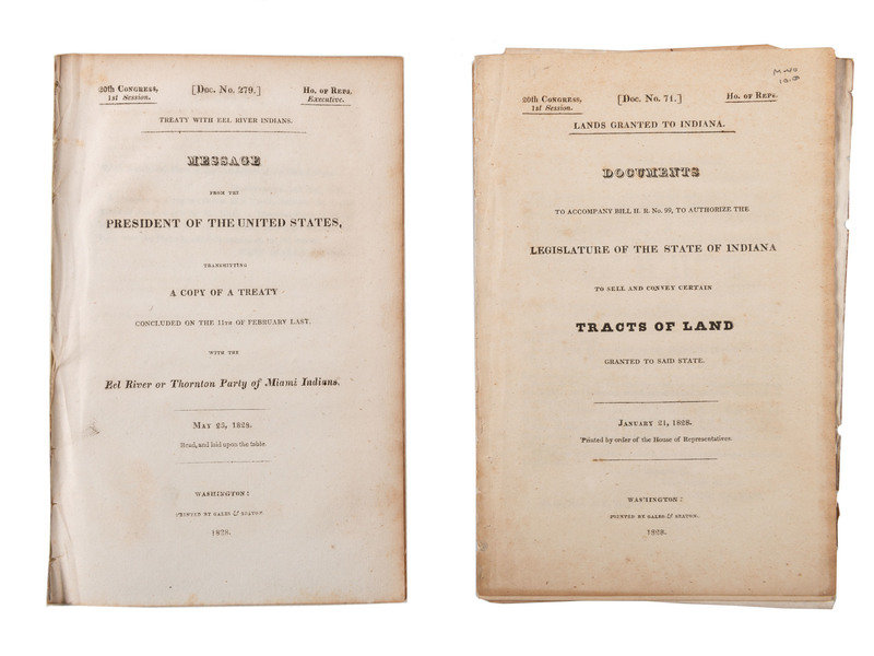 Treaty with Eel River Indians. Message from the President of the United States, Transmitting a Copy of a Treaty… with the Eel River or Thornton Party of Miami Indians. Washington: Gales & Seaton, 1828. 8vo, disbound, 7pp.