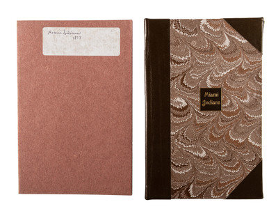 Report from the Secretary of War, Transmitting In compliance with a resolution of the senate, the report of the commissioner to investigate claims against the Miami Indians… March 2, 1839. Senate Doc. No. 302, 25th Congress, 3d session. 8vo, rebound in ¾ leather over marbled paper, 56pp. With: Estimate – Treaty with the Miami Indians. Letter from the Secretary of War, Transmitting an estimate of funds required to carry into effect the treaty with the Miami Indians, of the 28th November, 1840. House of Reps. Doc. No. 43, 27th Congress, 1st Session. 8vo, bound with above, 7pp. And Miami Indians. Letter from the Secretary of the Interior…concerning moneys alleged to have been improperly taken from the funds of the Miami Indians of Indiana and Kansas and paid to other Indians. Jan 4, 1886. House Ex.Doc. No. 23, 49th Congress, 1st Session. 8vo, bound with previous, 27pp.