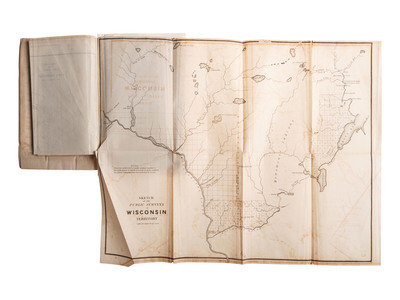 Shields, James. Report of the Commissioner of the General Land Office. Dec. 8, 1845. House of Reps. Document No. 12, 29th Congress, 1st Session. 8vo, disbound (no wraps), 114pp. Includes maps, most public surveys, (all uncolored) of: Indiana; Michigan; Iowa; Wisconsin; Missouri; Illinois; Arkansas; South Tennessee; Greensburg District, LA; Southeastern Louisiana; South Western District, LA; District North of the Red River; Alabama (showing Chickasaw, Cherokee, and Creek Cessions); and State of Florida.