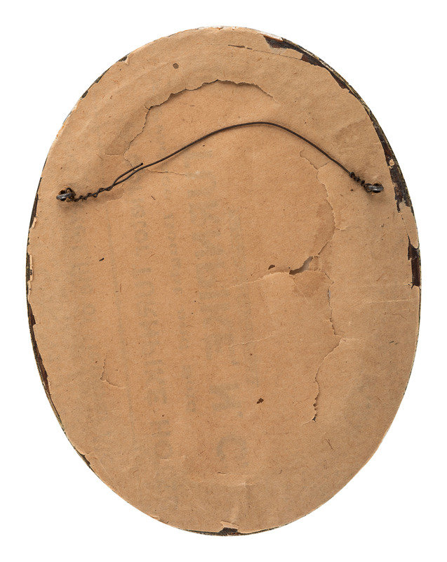 Sight 3 1/2 x 5 in. lithograph. (Minor toning, not examined out of frame.) Housed in giltwood oval frame (small chips).
