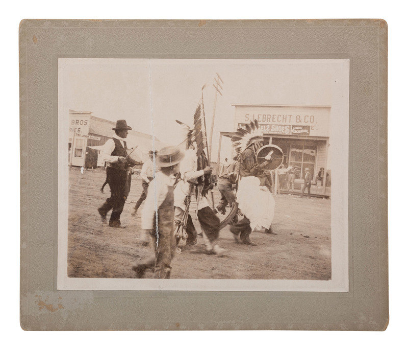 [OKLAHOMA]. Comanche Group on Main Street, Lawton, Ok. N.p.: N.p., ca 1900.