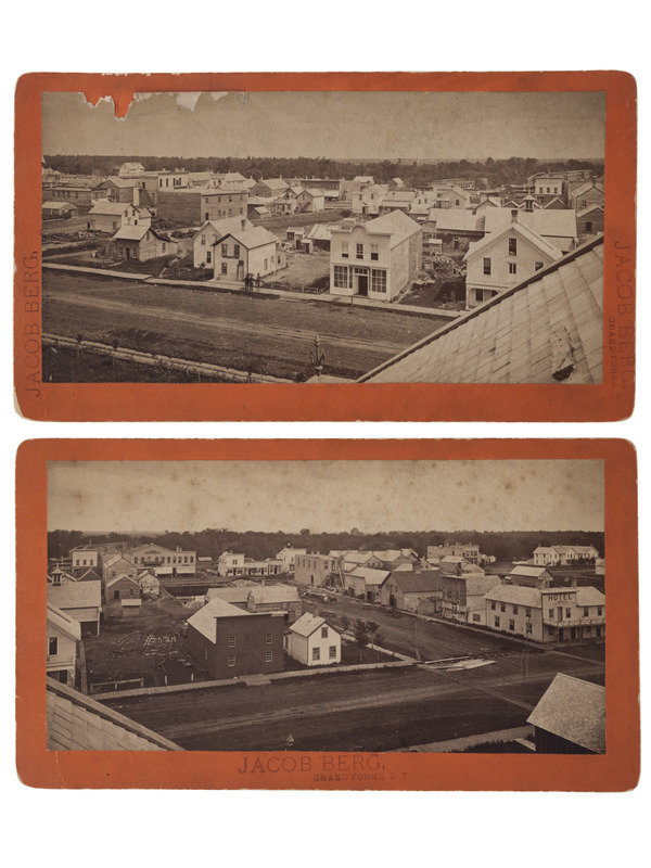 [DAKOTA]. BERG, Jacob, photographer. A group of 2 cabinet cards of Grand Forks, Dakota Territory. Ca 1880.
