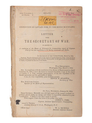 [WESTERN AMERICANA]. Expedition of Captain Fisk to the Rocky Mountains. Letter from the Secretary of War. [Washington]: N.p., [1864].