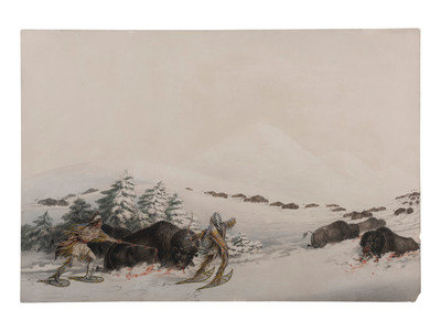 Catlin, George. Buffalo Hunt, on Snow Shoes. Plate 15.