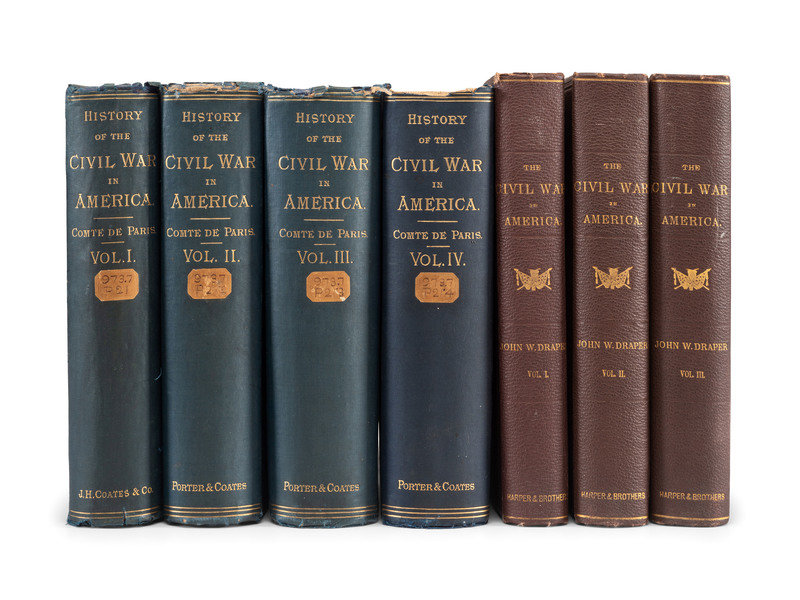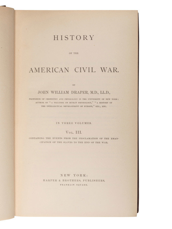 [With:] DRAPER, John William. History of the American Civil War. new York: Harper & Brothers, 1867-1870. 3 volumes, 8vo. Maps. (Minor toning.) Publisher's original maroon cloth gilt.