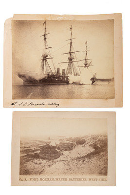 [CIVIL WAR]. A group of 5 items regarding Civil War naval operations, incl. photographs of Fort Morgan and the USS Pensacola, and correspondence.