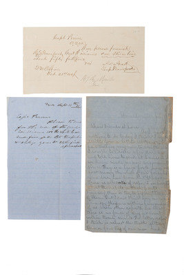 [Also with:] ALS, 1p (5-1/2 x 8-3/4 in.), Donaldsonville, July17th, n.y. Incomplete, missing pages, thus both writer and recipient are unknown. (Addressed to “dear friends at home”). “There is a large force here, in fact nearly the whole of our force has come down here from Port Hudson. There is all sorts of reports in circulation about the rebils[sic] in their forts. Some say there is ten to fifteen thousand of them. But I don’t think any one knows. Some say they are within five miles of us while others report s are that there is no force of any account within twenty miles. The latter report I think is nearest the truth although three or four Ref. of our men had [page ends here]”