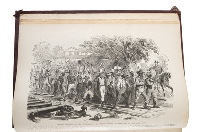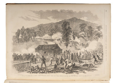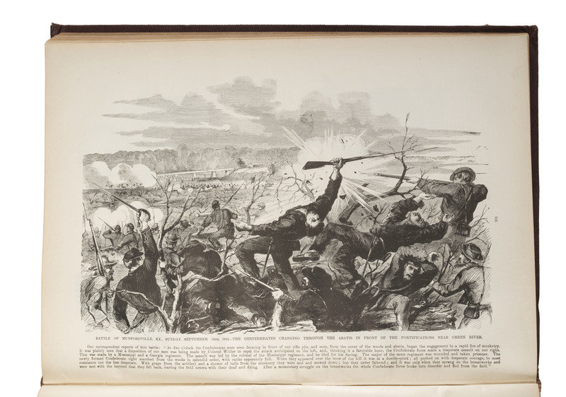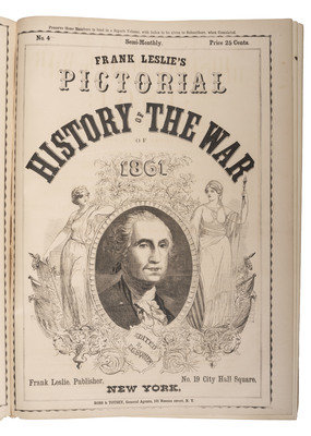[With:] Famous Leaders and Battle Scenes of the Civil War. New York: Mrs. Frank Leslie, 1896. Folio. Illustrated profusely. (Minor toning at edges.) Original publisher's illustrated burgundy cloth gilt (losses at corners, light wear at extremities).