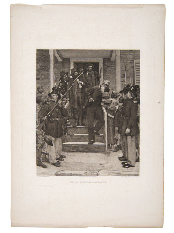 [With:] Lithograph "The Last Moments of John Brown," image size 8 x 9.5 in., 11.75 x 13 in. overall (toning, light soil, small tears along top edgeline). Gravure, Gebbie & Husson Co., 1889, after the painting by Thomas Hovenden.