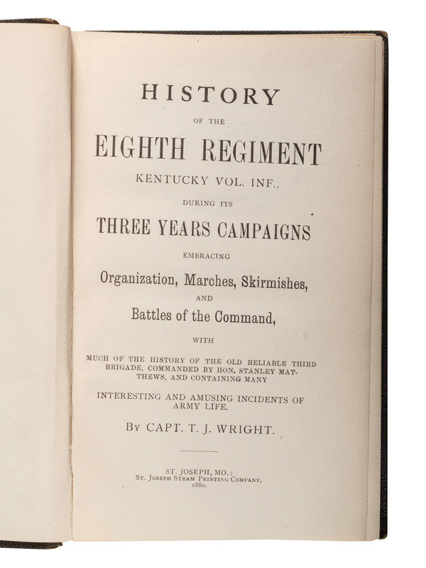 [CIVIL WAR - KENTUCKY]. WRIGHT, Thomas J. History of the Eighth Regiment Kentucky Vol. Inf., During its Three Years Campaigns. St. Joseph, MO: St. Joseph Steam Printing Company, 1880.