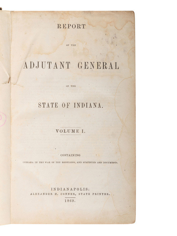 A complete set of Indiana's roster of participants in the Civil War. Volume I published in 1869, volume II in 1865, volumes III-VI in 1866, vol. VI in 1867.