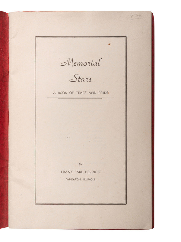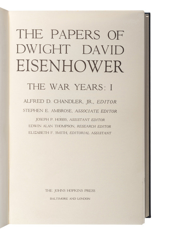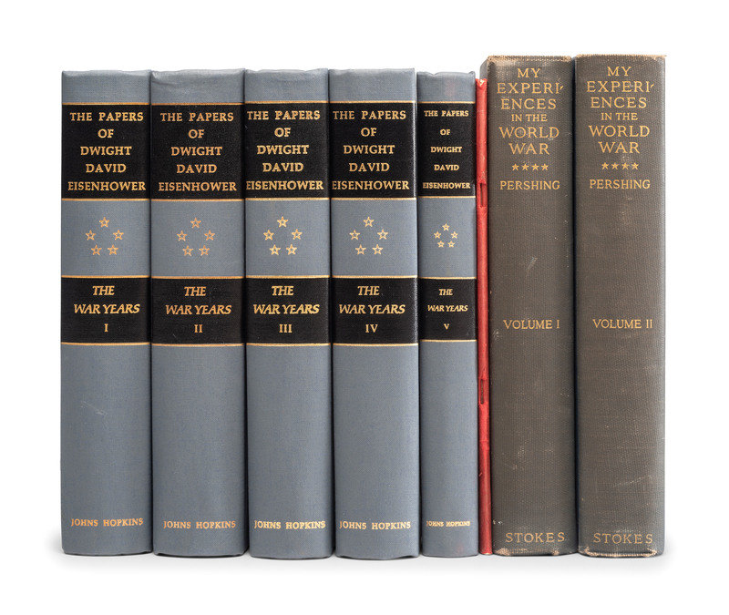 PERSHING, John J. (1860-1948). My Experiences in the World War. New York: Frederick A. Stokes Company, 1931. 2 volumes. -- EISENHOWER, Dwight D. (1890-1969). Alfred D. Chandler, Jr. (1918-2007), editor. The Papers of Dwight D. Eisenhower. The War Years. Baltimore and London: The Johns Hopkins Press, 1970. 5 volumes. -- HERRICK, Frank Earl. Memorial Stars: A Book of Tears and Pride. Wheaton, IL: [Phillips Print Shop], [1948]. -- Together, 3 works in 8 volumes, all FIRST EDITION, 8vo, all in publisher's bindings, condition generally very good to fine.