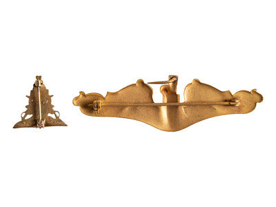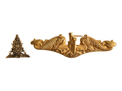 [WORLD WAR II]. US Naval Academy pin for 1923 and submariner's pin belonging to Carl K. Zimmerman, plus 1923 Lucky Bag belonging to J.B. Renn.