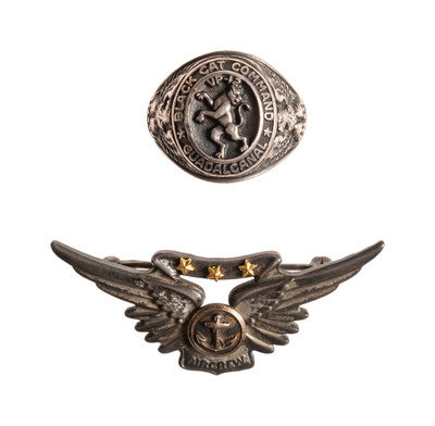 [WORLD WAR I & II]. A group of 6 items, incl. pilots' wings and ring associated with Black Cat Commandos, Pacific Theater.