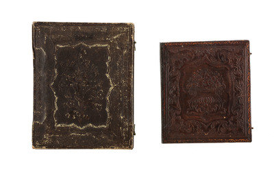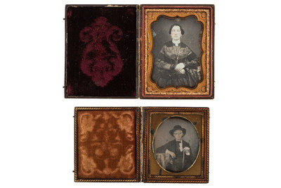 [With:] Sixth plate daguerreotype of an aged, apparently visually impaired gentleman wearing spectacles and holding a cane (image with clouding, some spotting, tarnish to perimeter of plate). Housed in full case (wear to hinge, some surface wear).