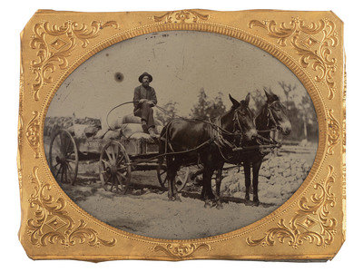 [EARLY PHOTOGRAPHY]. Half plate tintype of horse-drawn wagon.