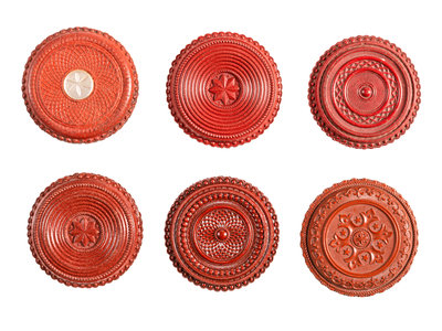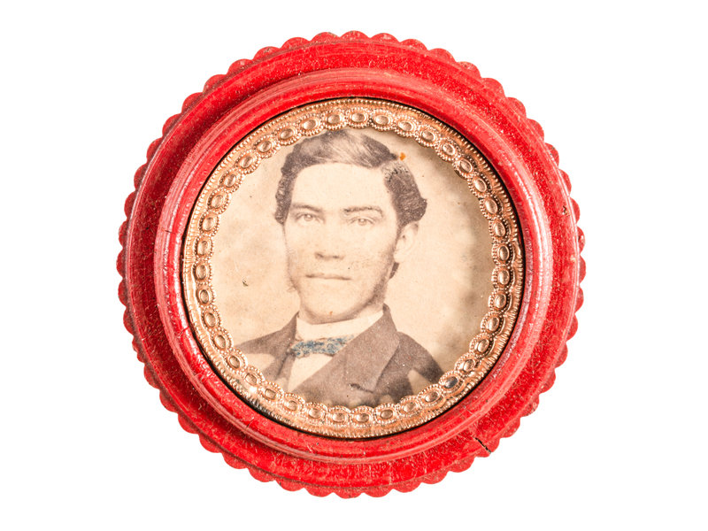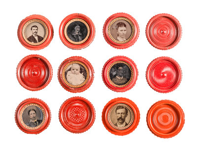 [EARLY PHOTOGRAPHY - UNION CASES]. A group of 7 red "oreo" cases containing assorted portraits, including:
