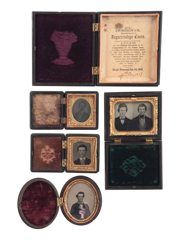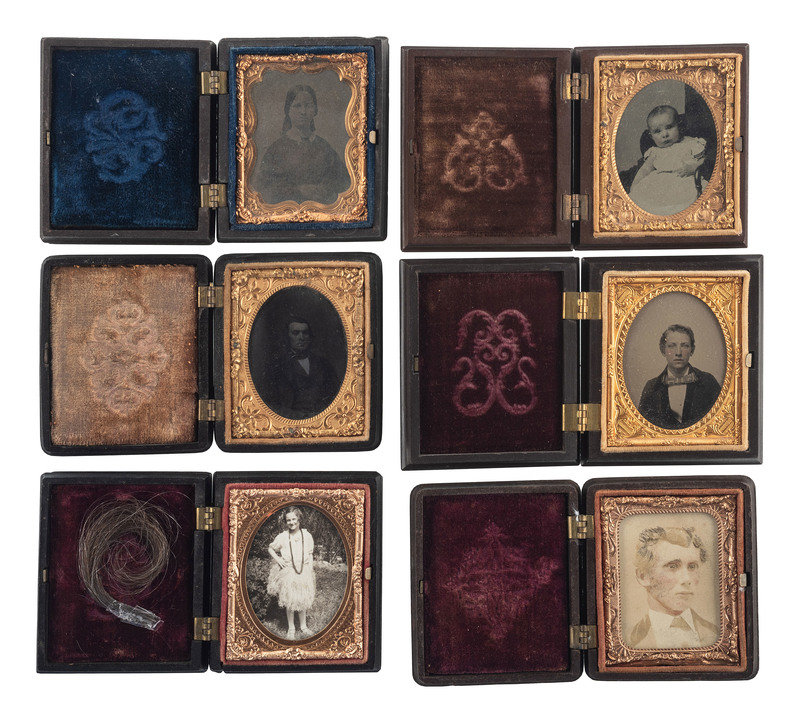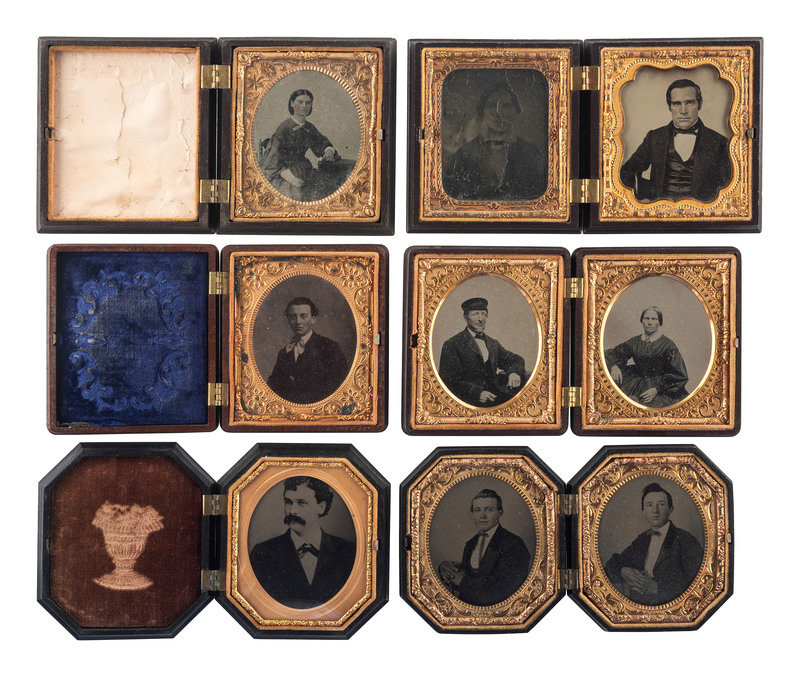 [EARLY PHOTOGRAPHY - CASES & FRAMES]. A group of 20 assorted union cases, most containing images, including: