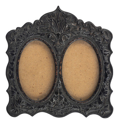[Also with:] Double-carte-de-visite Union frame with floral motif (slight tarnish). Marked "Patented 1855" to verso