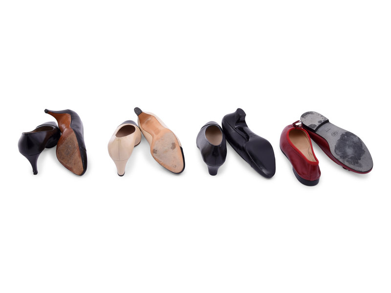 Black leather pumps with black patent leather toe. Dust bag and box included.