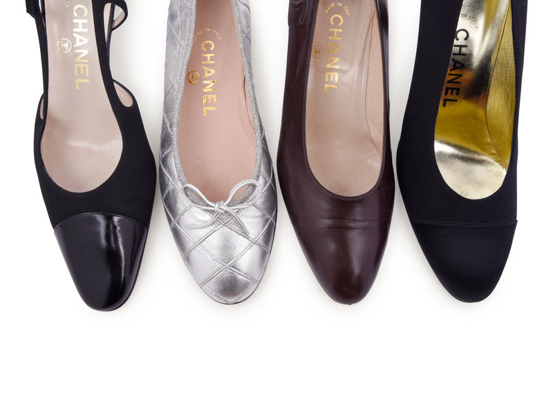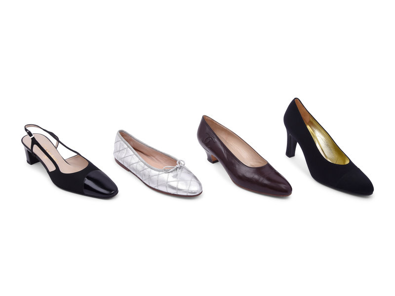 Brown leather low heels with stitched CC logos on the exterior side heel. Dust bag and box included.