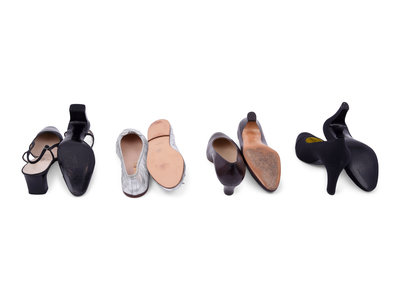 Black taffeta sling back classic shoes with black leather toes. Dust bag and box included.
