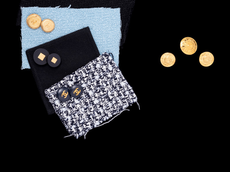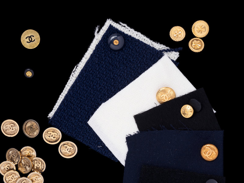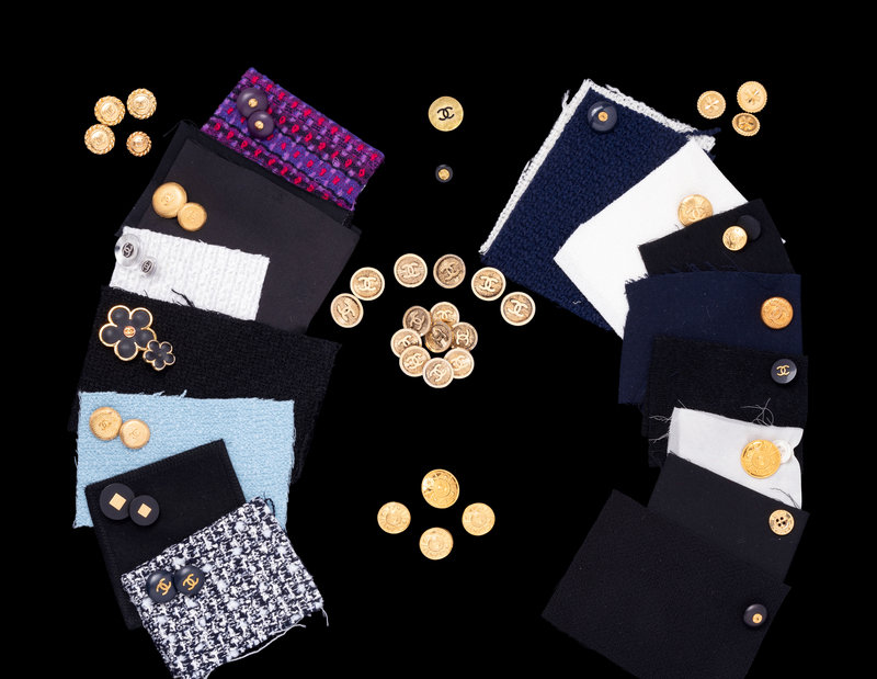 14 packs of buttons with various test fabric swatches totaling 43 buttons.