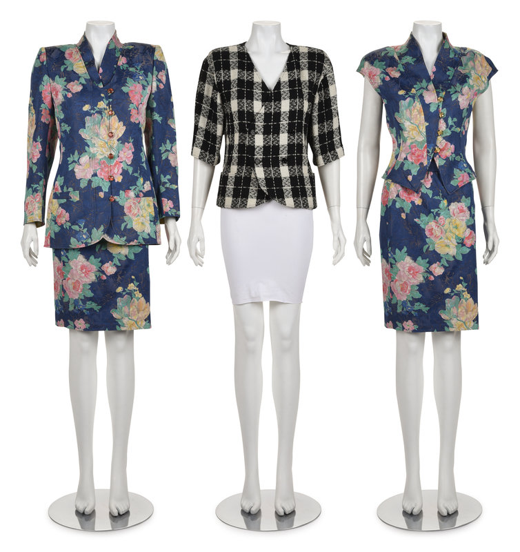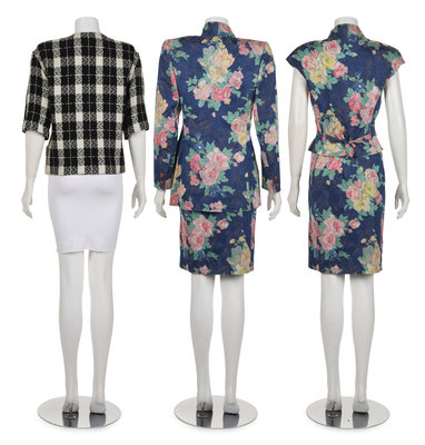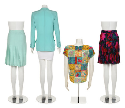 This lot includes eight items: One Top, One Two-Piece Skirt Suit, One Three-Piece Skirt Suit, One Jacket, One Skirt.