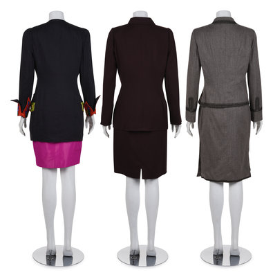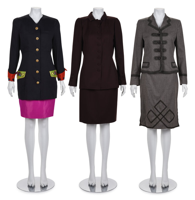 Three Designer Skirt Suits: One Gianni Versace, One Oscar de la Renta, and One Moschino, 1990s