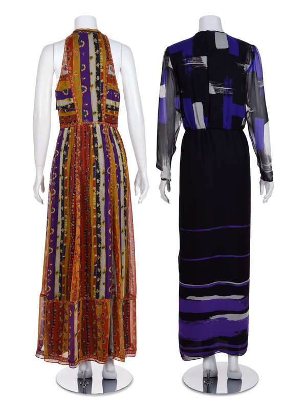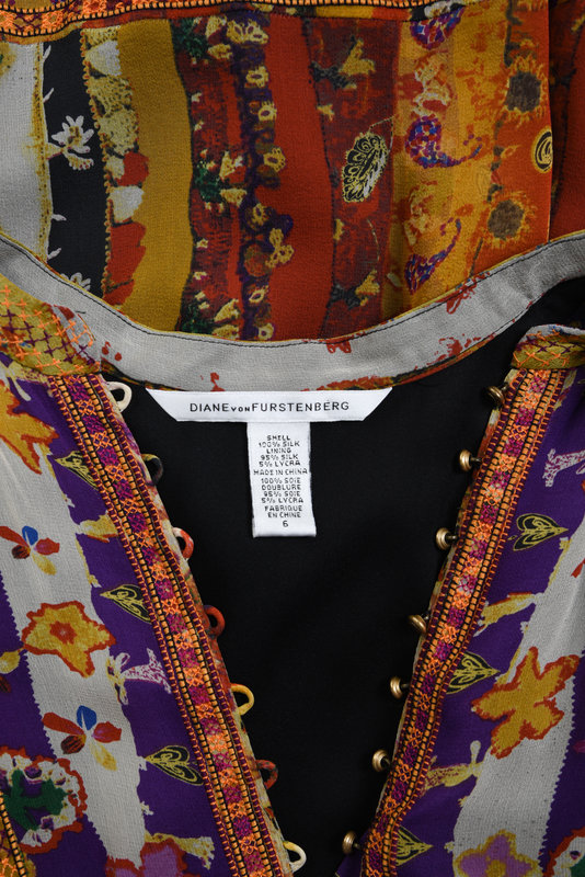 Two Printed Dresses: One Diane von Furstenberg and One Hanae Mori