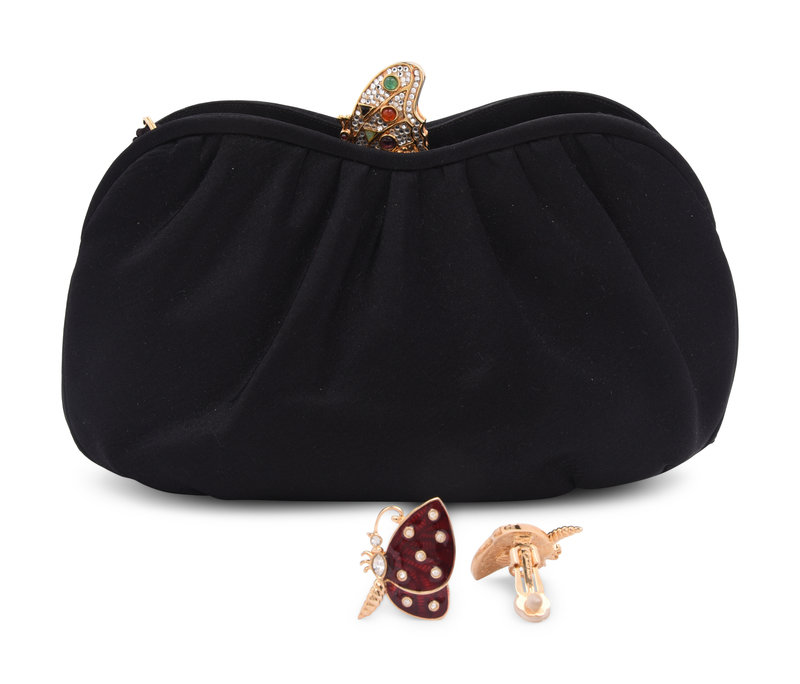 Judith Leiber Gathered Satin Clutch and Butterfly Ear Clips